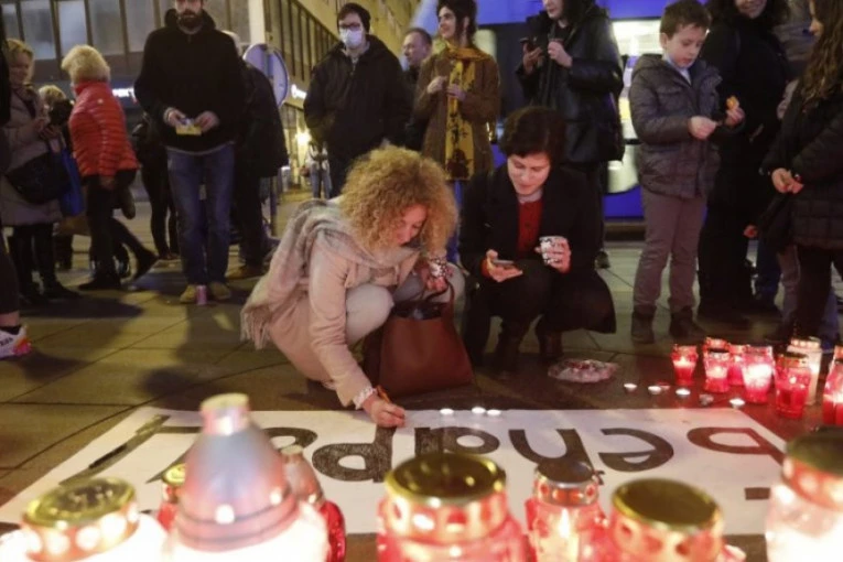 Oko tridesetak okupljenih ostavili su upaljene lampaše, cveće i plišane zečeve, a zapevali su i Balaševićevu baladu “Slovenska”.