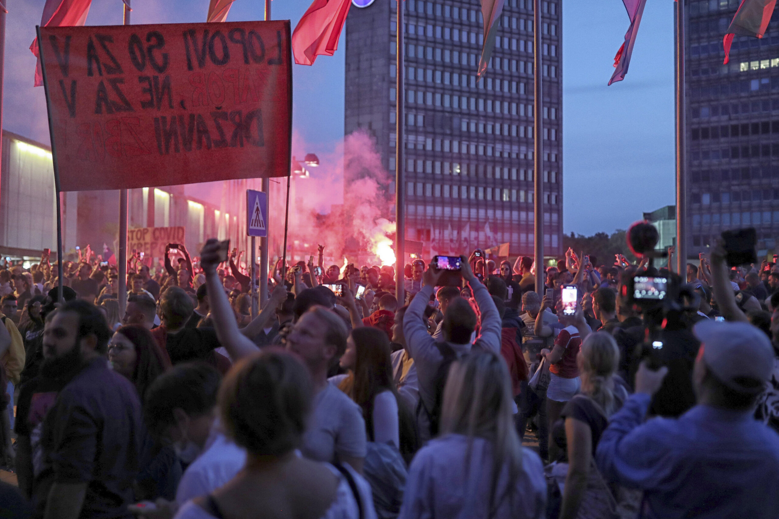 Protivnici mera za suzbijanje korona virusa sinoć su se okupili na Trgu republike u Ljubljani i pozvali Vladu da podnese ostavku, a u nemirima tokom protesta je povređeno nekoliko policajaca.