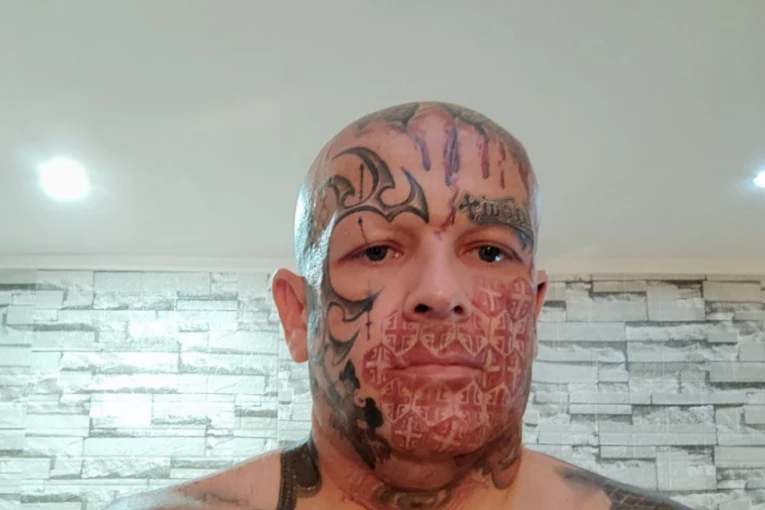 Ovaj Dodikov obožavatelj je Marun Ćorić, a ono što je privuklo pažnju svih prisutnih su tetovaže koje mu prekrivaju čitavo lice.