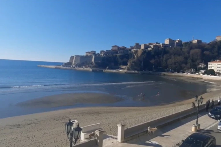 Dok na severu Crne Gore, na Žabljaku, ima oko 70 centimetara snega, nekoliko dece u Ulcinju danas se kupalo i brčkalo na Maloj plaži.