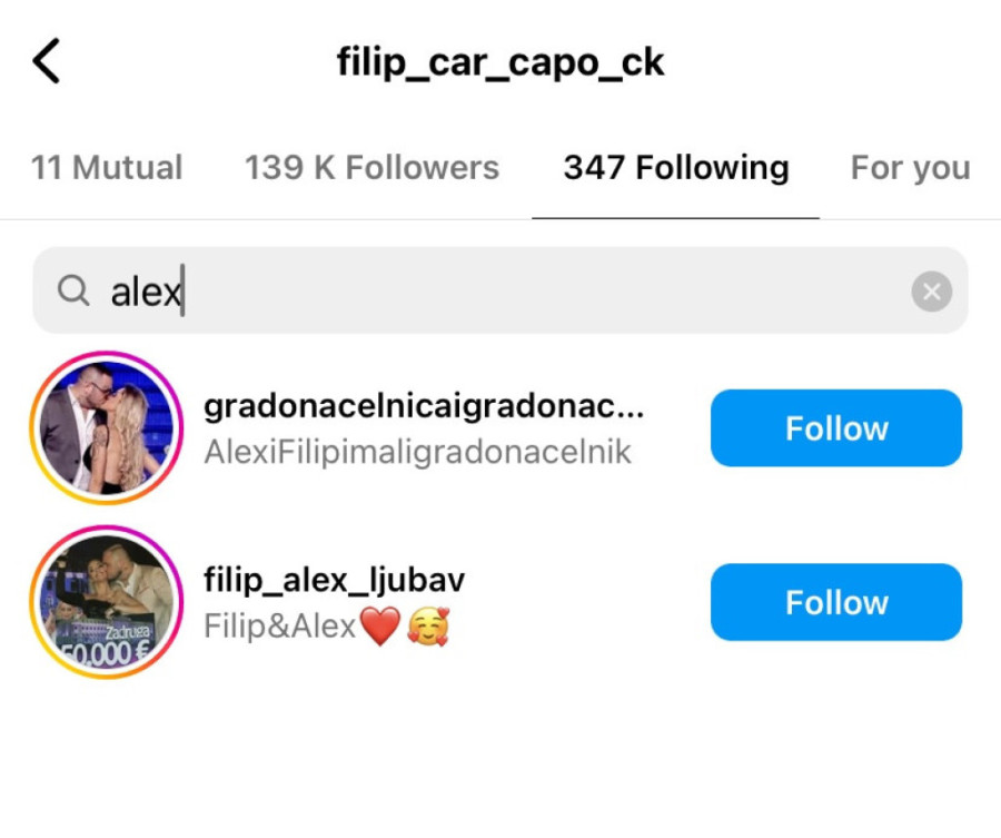 Uprkos priči o zajedničkom životu, Aleksandra i Filip su se sada otpratili na Instagramu, čime su podgrejali glasine o raskidu.