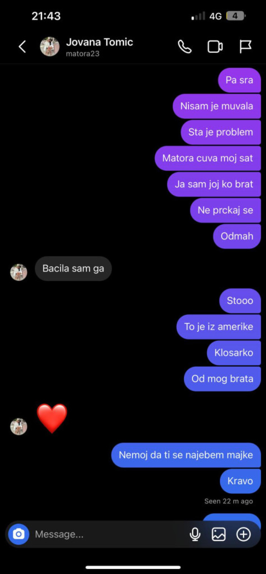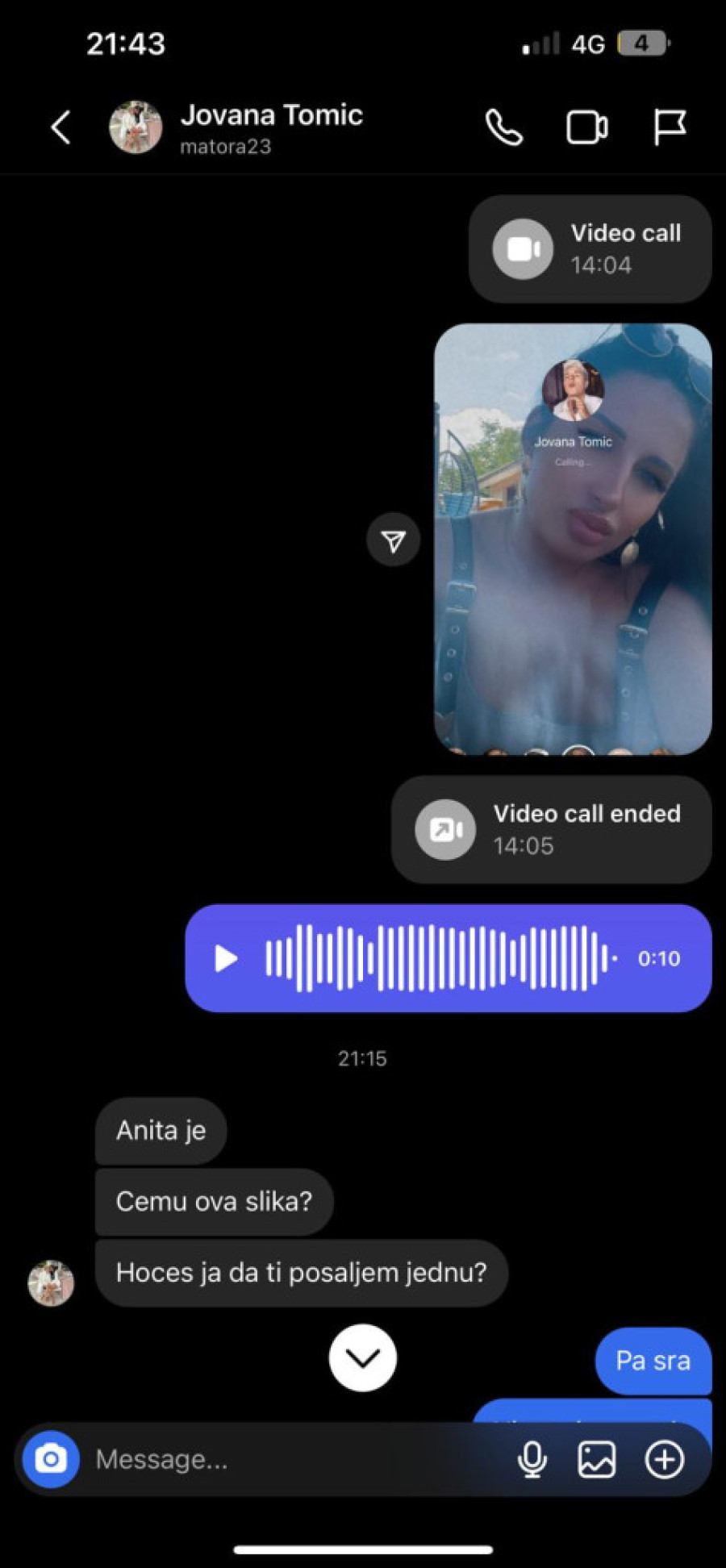 Sandra je, naime, izrazila želju da dođe na svadbu i poželela im sreću. Poslala je glasovnu poruku i svoju sliku, zbog čega je Anita doživela izliv ljubomore, pobesnela i zapretila joj sa Jovaninog nalog.