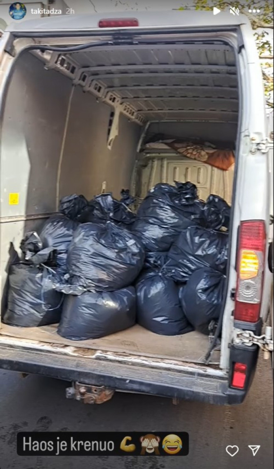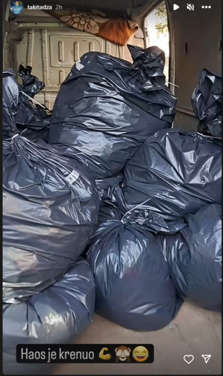 - 28 punih džakova, evo, da ne pomislite da je prazno - rekao je Marinković dok je snimao kombi pun vreća sa Majinim imenom i uz video napisao: