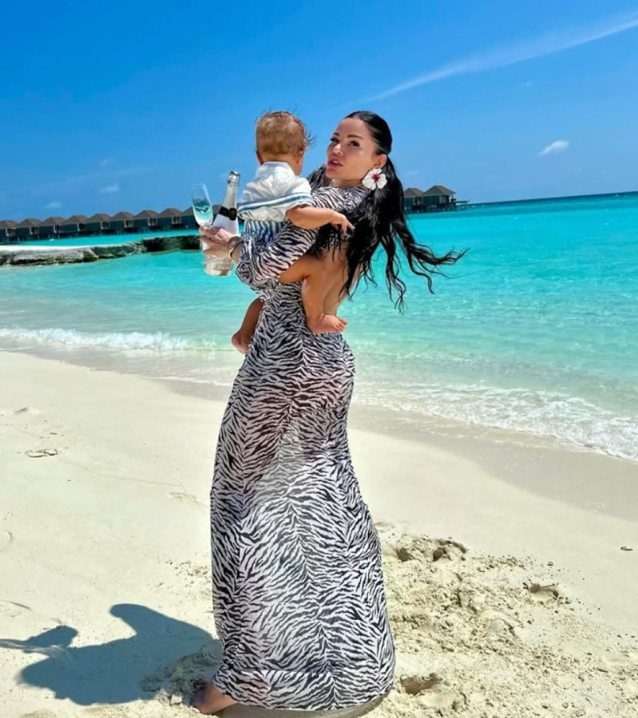 U februaru prošle godine donela je na svet dečaka, a sada, godinu dana kasnije, ona je sa naslednikom otputovala na Maldive, gde uživa u luksuznom okruženju.