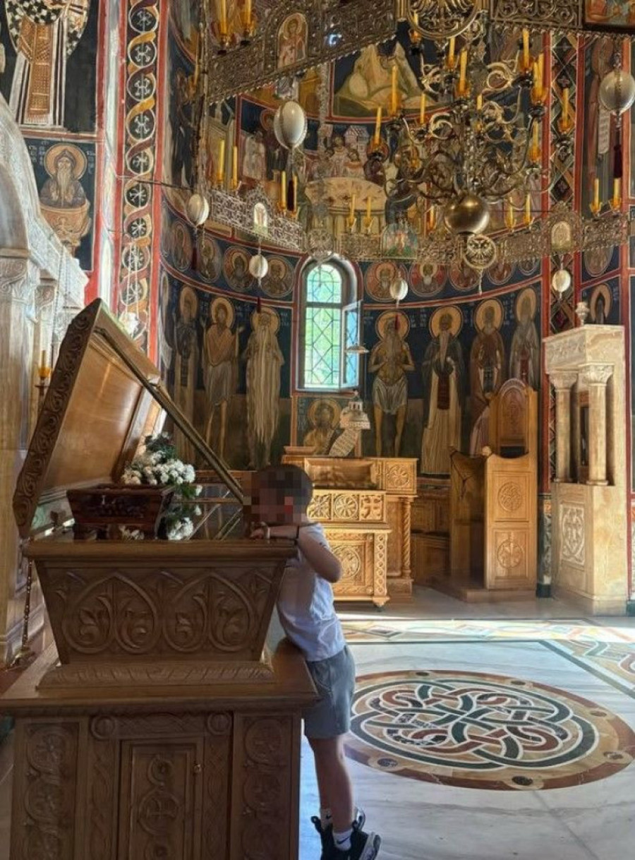 Mali Aleksej pozirao je sa mamom, poljubivši je u obraz, što je raznežilo mnoge fanove. Rijaliti pobednica je zatim u nastavku objavila fotografije iz unutrašnjosti manastira dok njen naslednik celiva ikonu.