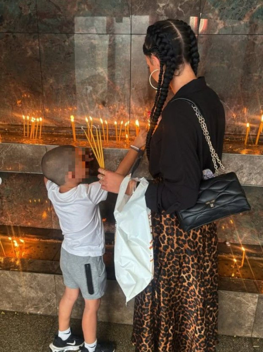 Nakon izlaska iz manastira, zajedno sa sinom zapalila je i sveće, dok su pratioci primetili kako dečaka uči pravim vrednostima.