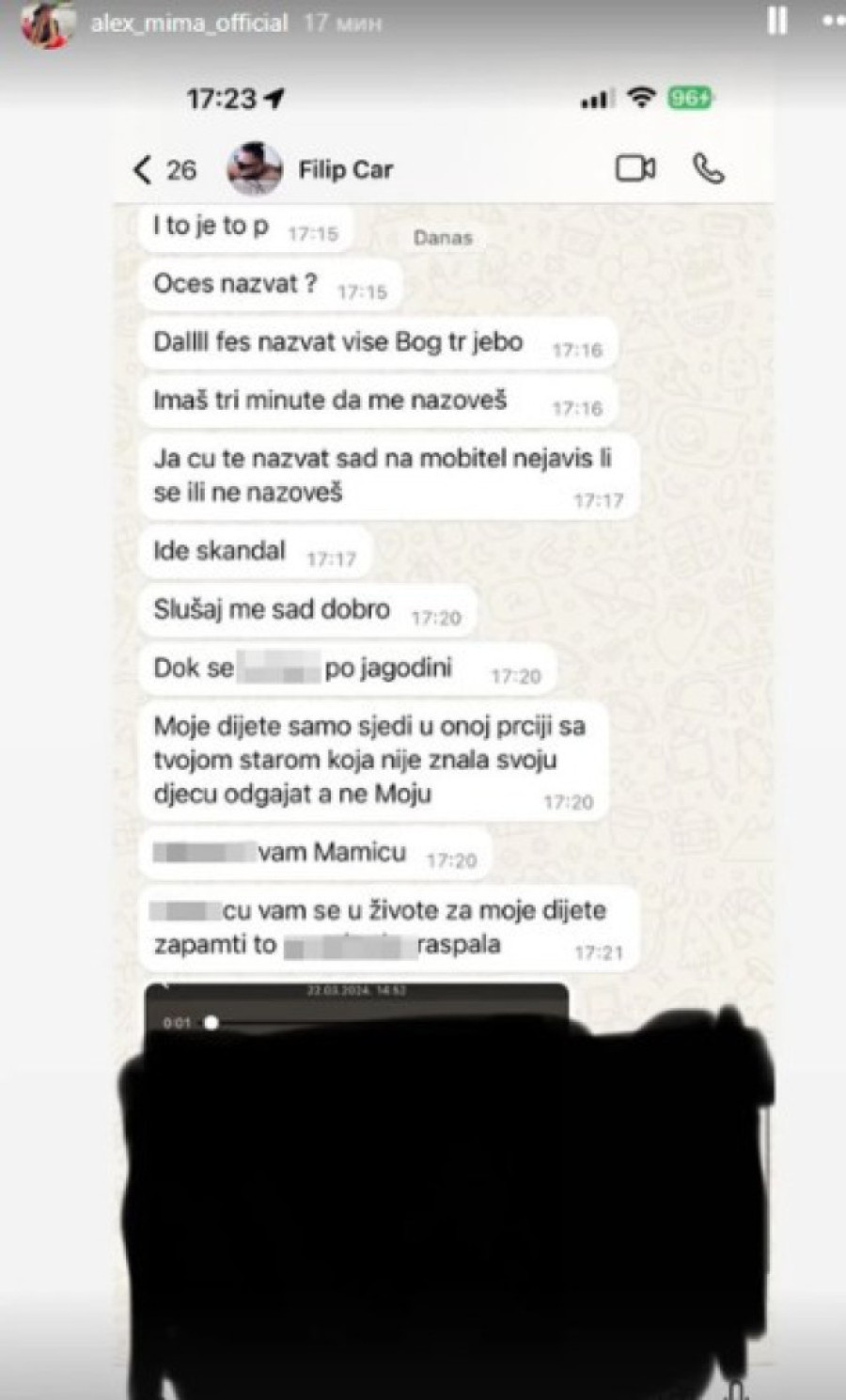 "Dete je samo dok se j***š po Jagodini" Aleks objavila nove šok prepiske Filipa Cara!