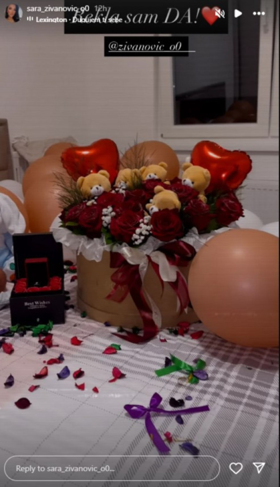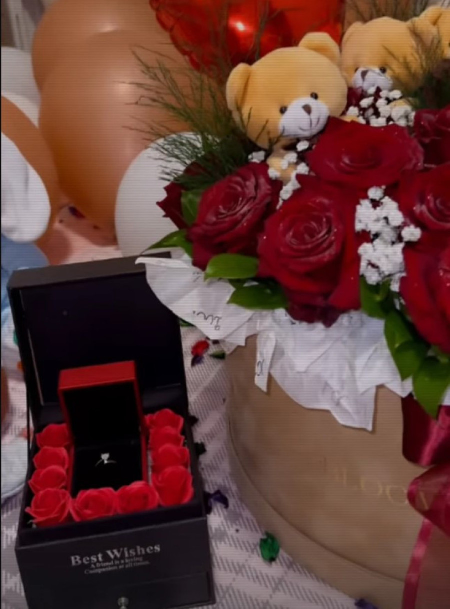 Na krevetu su je čekale igračke za dečaka, buket ruža sa medvedićima, baloni i kutija u kojoj je stajao prsten sa dijamantom.