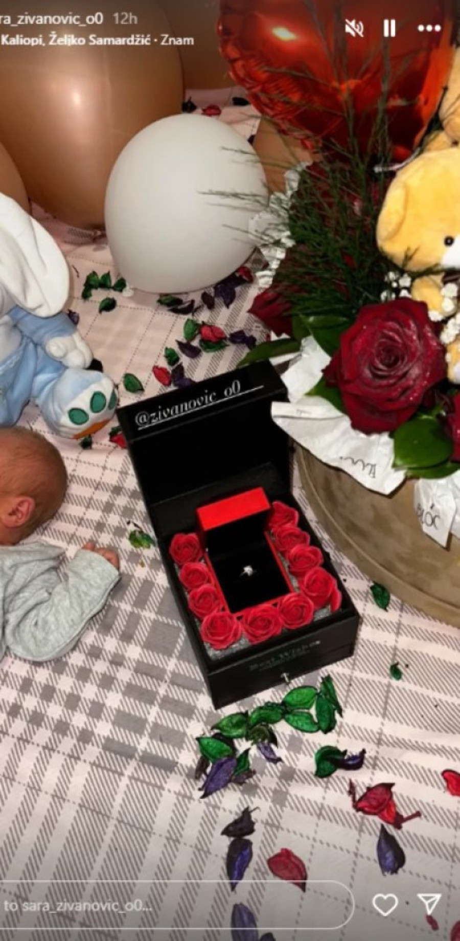 Sara Stijović, bivša učesnica "Elite" je pre tri dana postala mama, kada se porodila i na svet donela dečaka Mateja. Sada je izašla iz porodilišta i pored poklona ju je kući na stolu čekala crvena kutijica u kojoj je stajao verenički prsten.