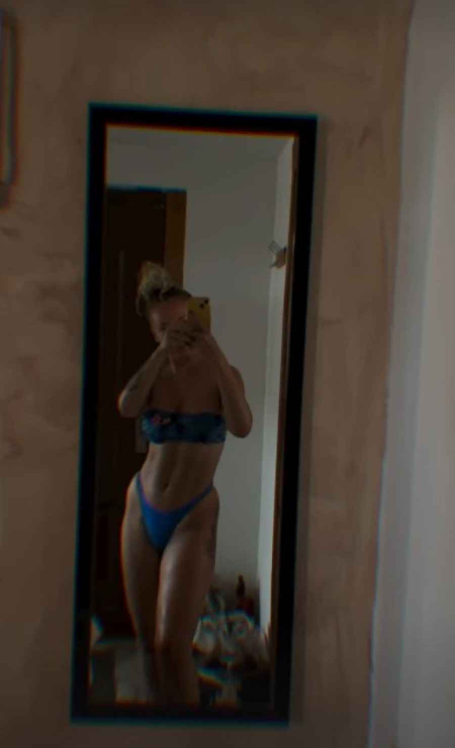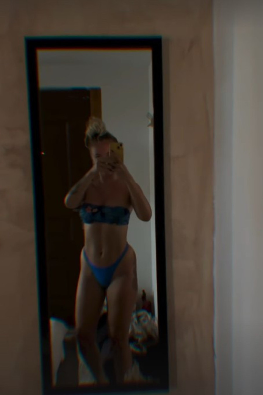 Milica je na Instagramu podelila fotografiju u ogledalu, pozirajući u kupaćem kostimu koji je istakao njen struk i zategnute noge. Gornji deo bikinija u tamnijim tonovima i plavi donji deo savršeno su naglasili njen preplanuli ten i izvajane trbušne mišiće.
