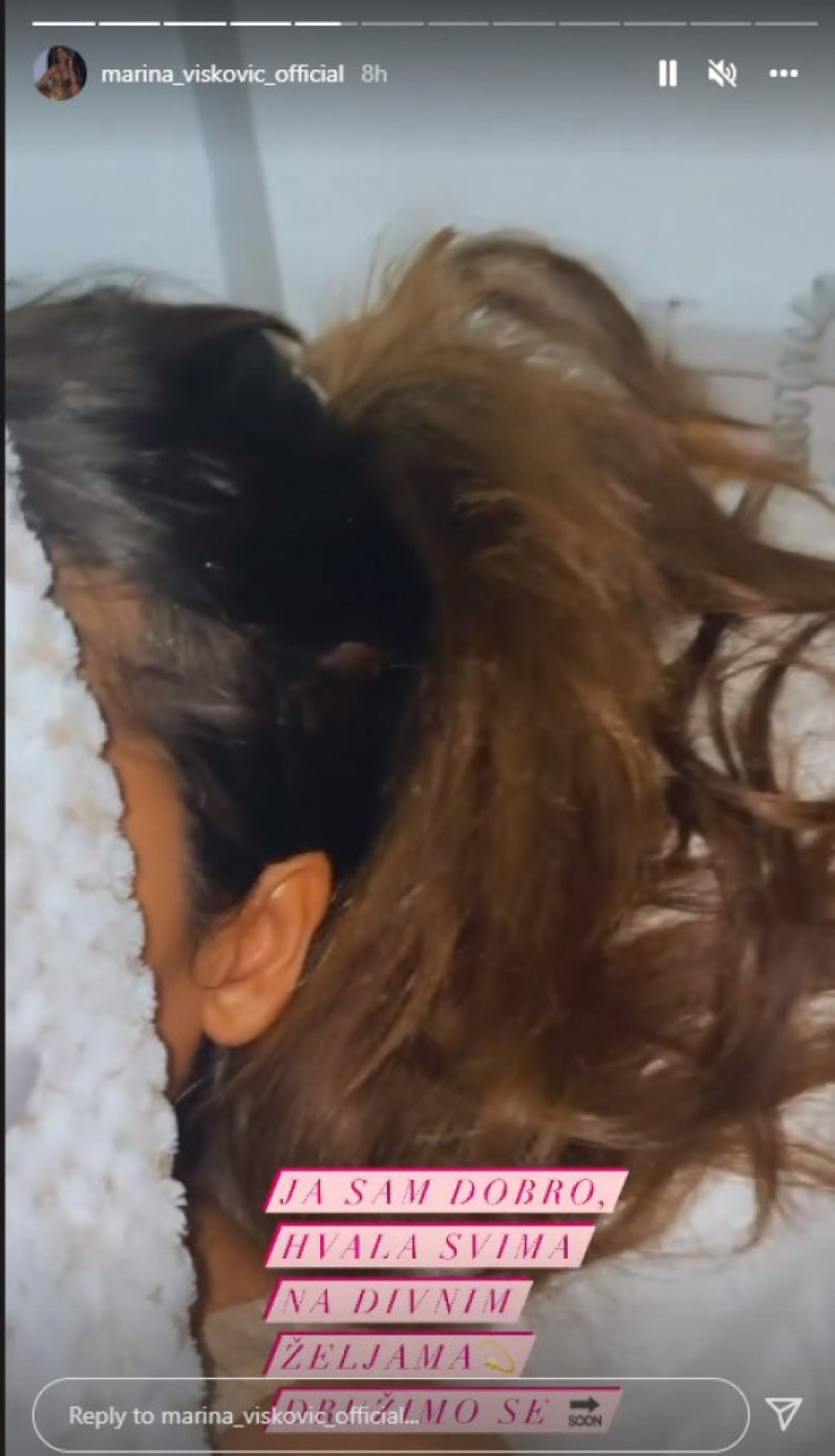 - Dragi moji, da vam se javim ovako kao avatar - počela je Marina koja je na snimku otežano govori i čini se, kroz zapušen nos.