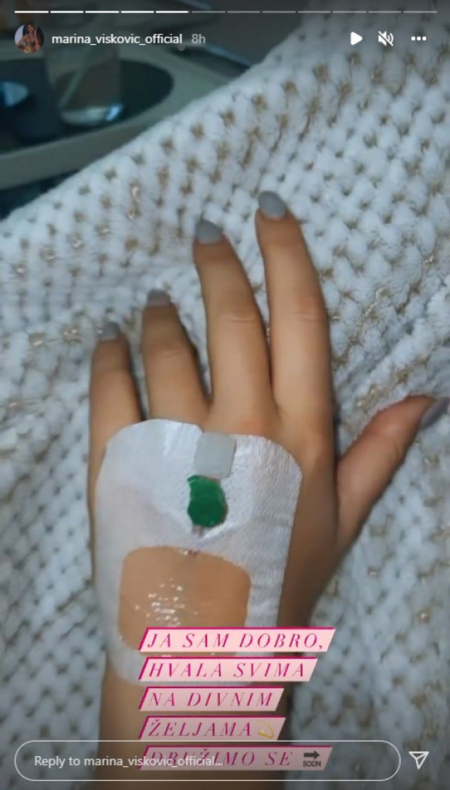 Pevačica Marina Visković objavila je juče, na svoj rođendan, 23. febuara da će posetiti jednu kliniku kako bi imala zahvat. Iako nije precizirala o čemu se tačno radi, Marina je na svom Instagram nalogu napisala da će biti u totalnoj anesteziji.