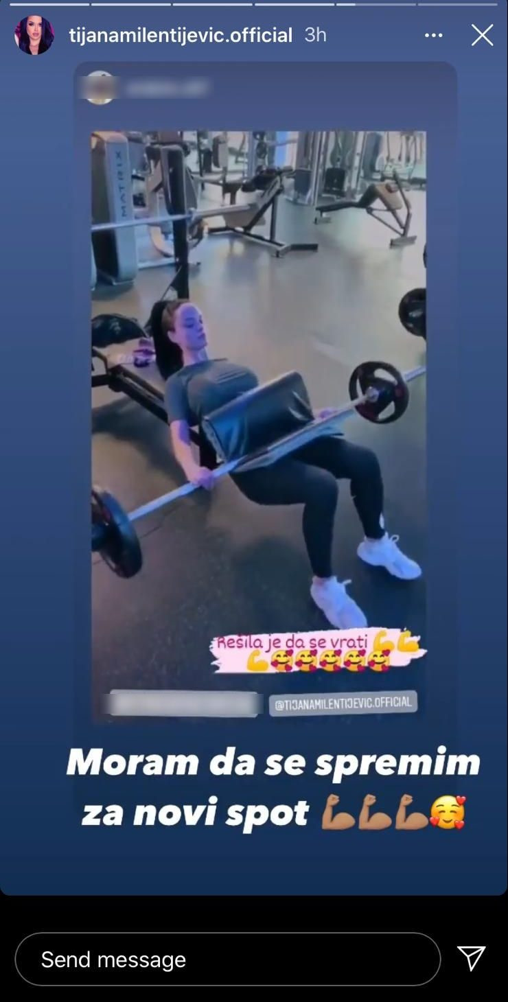 Ona je sada na svom Instagram profilu objavila fotografiju na kojoj se vidi kako naporno trenira u jednoj teretani u prestonici.