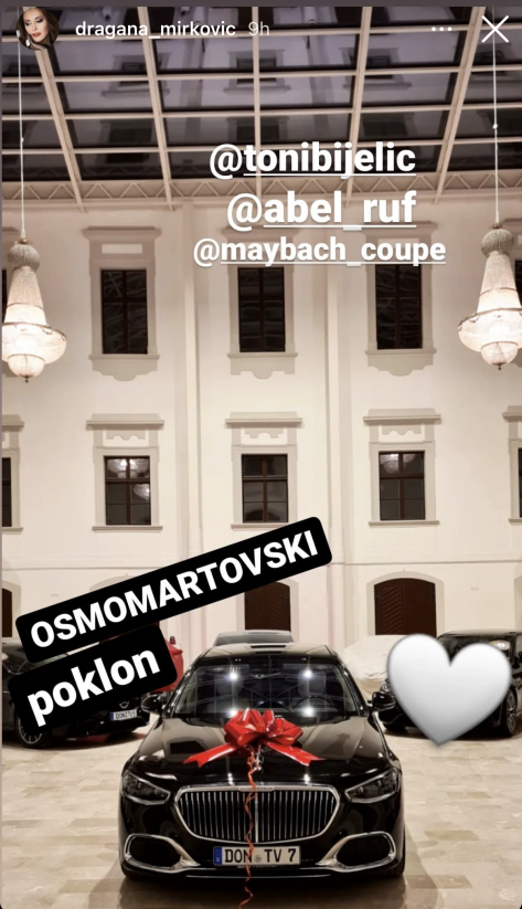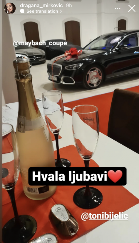 A da je morao da se ozbiljno potrudi svedoči i podatak da je kupio Mirkovićevoj „majbah S 680“, za koji u svetu već postoji lista čekanja od dve godine. Ipak, kao vlasnik fabrike modela „majbah kupe“ Bijelić je uspeo da dođe na vrh liste tako da je Dragana dobila jedan od prvih proizvedenih modela. Automobil koji će od danas moću da vozi dolazi sa potpuno revolucionarnim tehničkim inovacijama, čitav enterijer je u beloj koži a ključevi su u boji roze zlata.