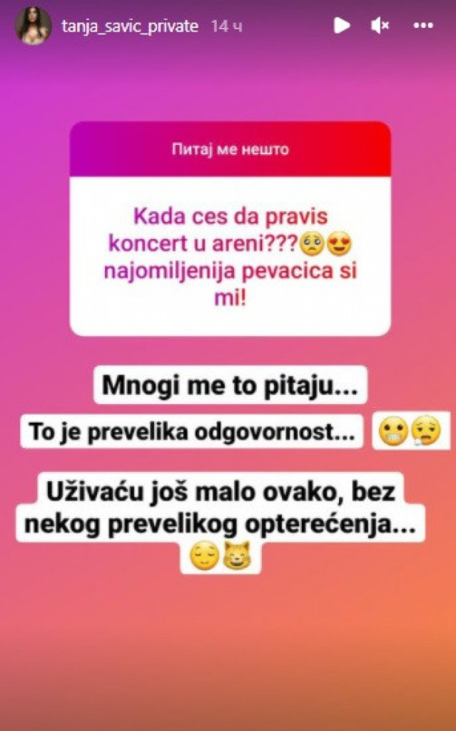 Naime, na pitanje jednog korisnika - kada će da pravi koncert u beogradskoj Areni, Tanja je odgovorila: