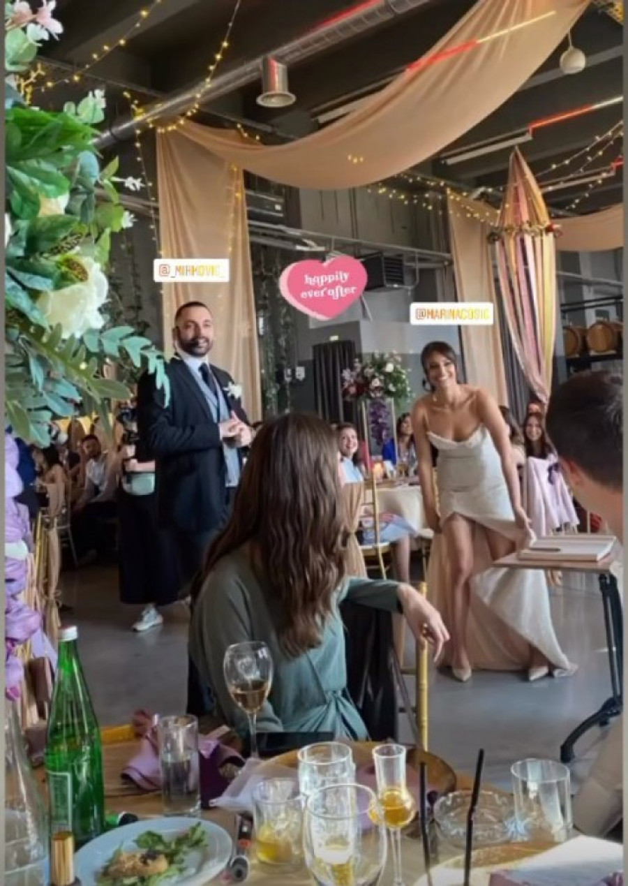 Sudeći prema snimcima koje je objavila na svom Instagramu, na svadbi je vesela atmosfera, a mnoge njene kolege su među zvanicama. Vladimir Kovačević, Filip Hajduković, Milan Zarić samo su neki od glumaca koji su prisustvovali Marininom slavlju.