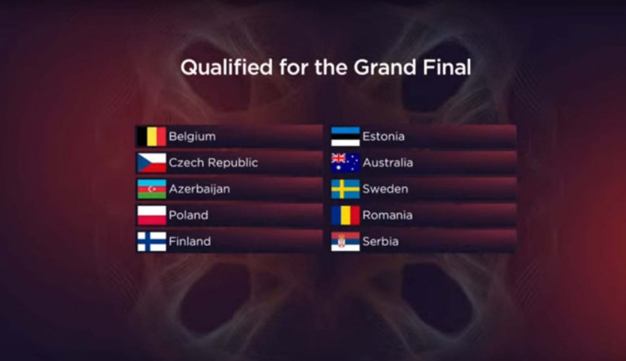Osim predstavnice Srbije Ane Đurić Konstrakte, večeras su nastupili takmičari iz Finske, Izraela, Azerbejdžana, Gruzije, Malte, San Marina, Australije, Kipra, Irske, Severne Makedonije, Estonije, Rumunije, Poljske, Crne Gore, Belgije, Švedske i Češke.