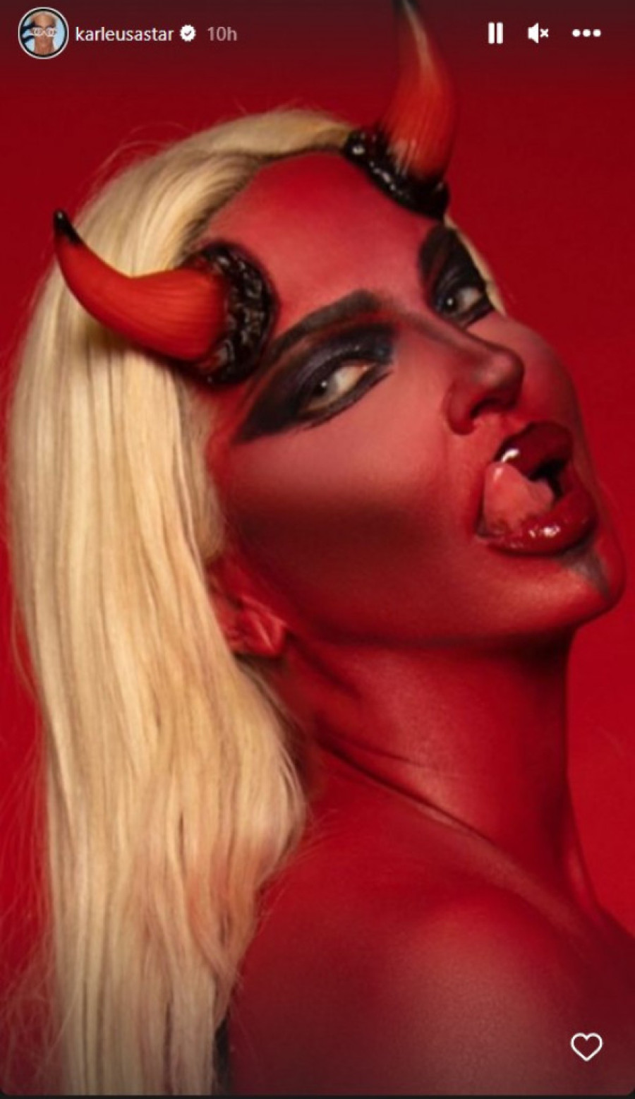 Brutalno izdanje Karleuše za Noć veštica: Seksi đavolica u tangama, grudi jedva prekrila, a evo kako su je bojili u crveno! (FOTO)