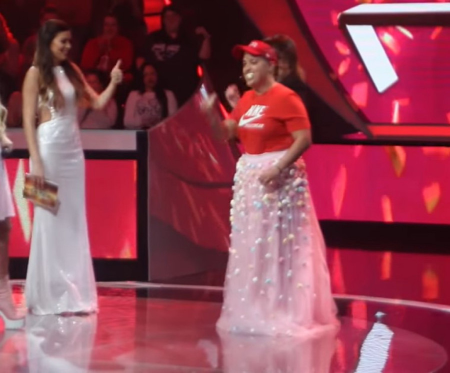 Još jednom je na Grandovoj sceni napravila haos, kada je od takmičarke pozajmila" dugu suknju od tila po kojoj su bili zalepljene mačmelou pufnaste bombone koje je pavačila jela.