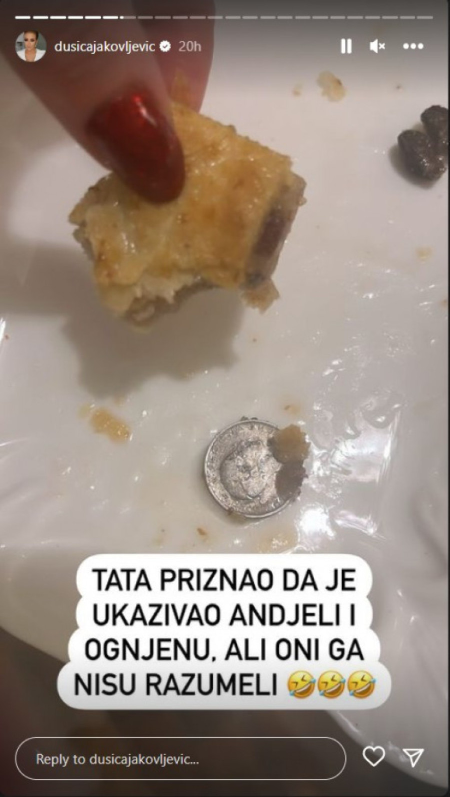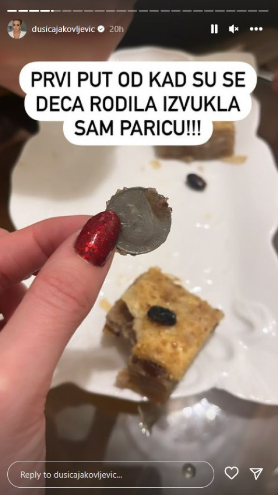 Detalje iz topline porodičnog doma podelila je i sa svojim pratiocima na Instagramu, a ono što je svima zapalo za oko, jeste da Dušica posebno uživa u domaćoj kuhinji. Ove godine imala je sreće i kada je novčić iz česnice u pitanju.