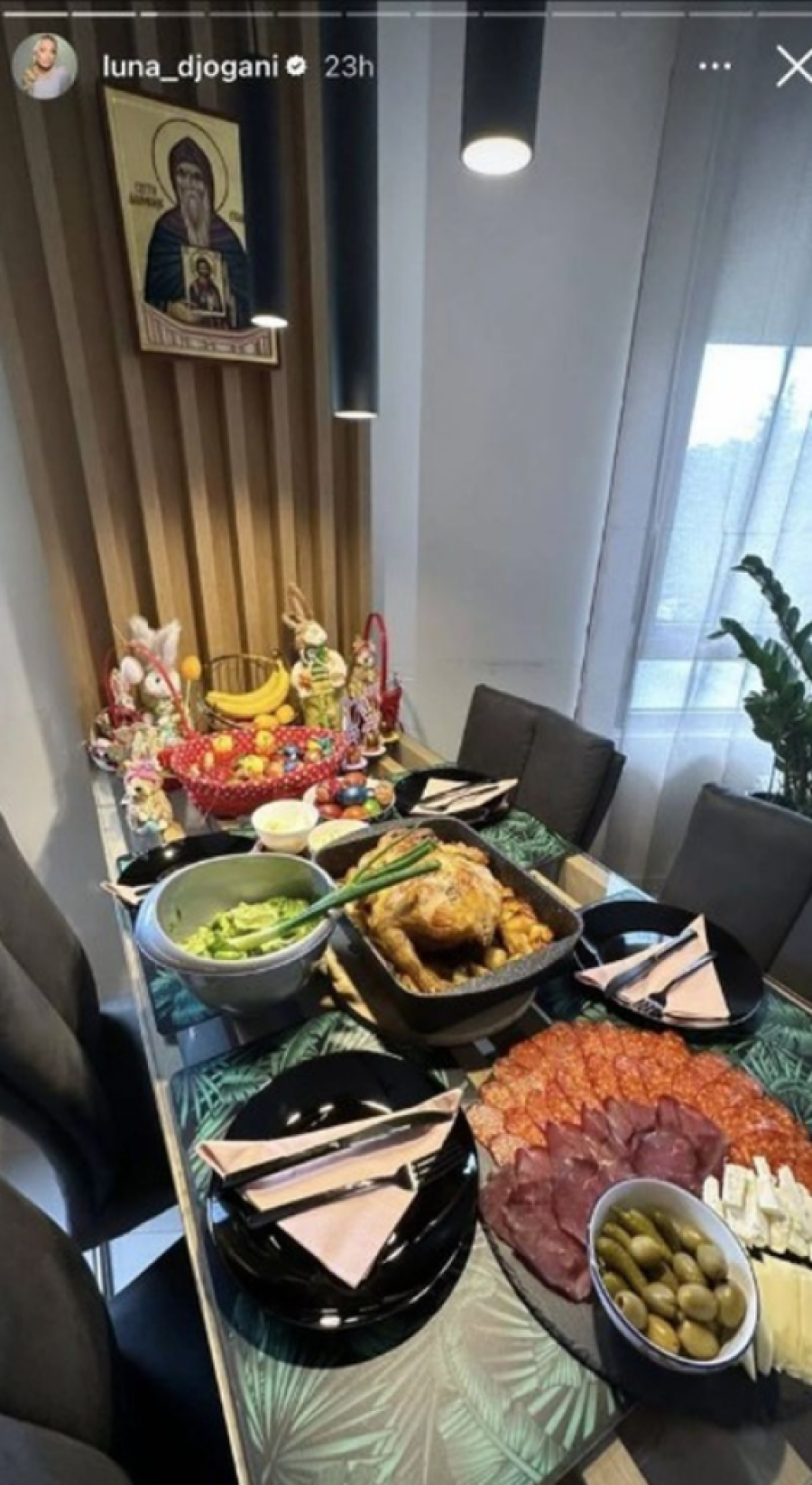 Za Vaskrs se posebno potrudila, a trudnoća je nije sprečila da ofarba jaja i pripremi vaskršnju gozbu za svoje najmilije, te je tako u svom domu na Bežanijskoj kosi ugostila najbliže članove porodice, kako bi zajedno proslavili praznik.