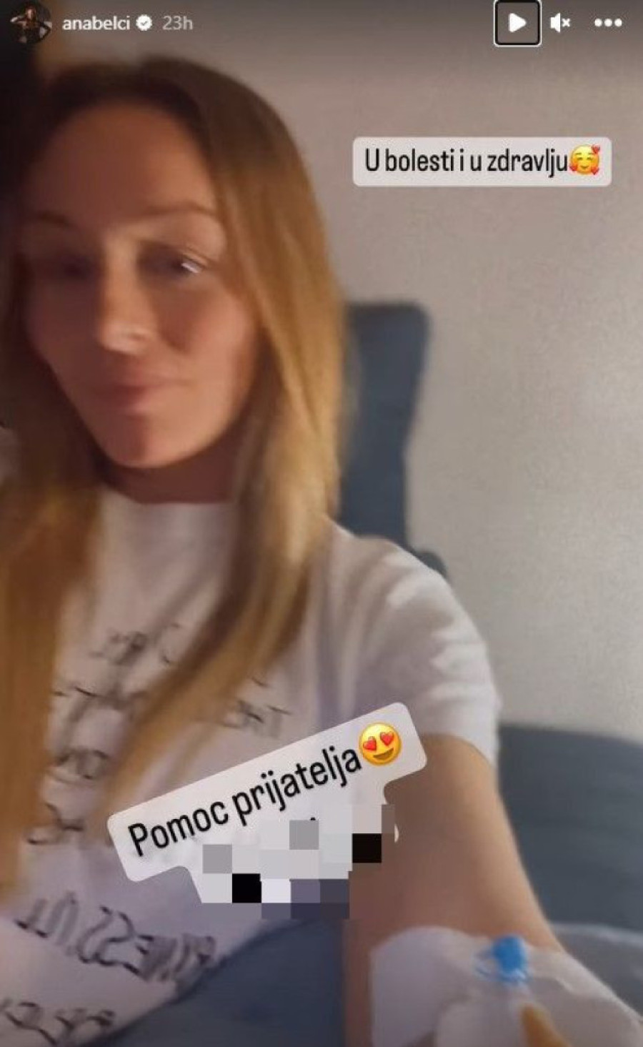 Anabela Atijas nema koga nije zabrinula pošto se oglasila na svom Instagram profilu fotografijom na kojoj se vidi da je na infuziji. Njena ćerka Luna Đogani podelila je u okviru svojih „storija" isti prizor, zbog čega su mnogi zaključili da joj je ona tada bila i najveća podrška.