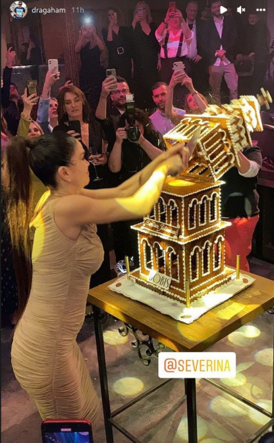 Severina je zajedno sa sinom Aleksandrom oduvala rođendanske svećice na torti od tri sprata, koja je bila ukrašena njenim crno-belim fotografijama i voćem, nakon čega je svojim gostima i zapevala, što detaljnije možete pogledati u galeriji u nastavku teksta.
