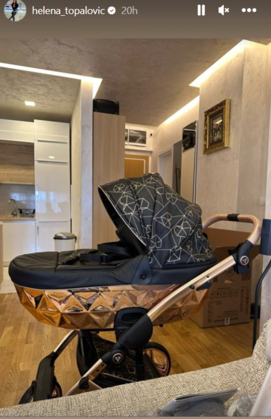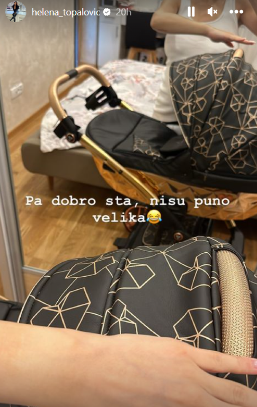 Dok se pratiocima hvalila kakva su kolica ona i njen suprug kupili za naslednicu, Helena je pokazala kako izgleda i njihova spavaća soba koja poseduje francuski ležaj i ogroman orman sa ogledalom.