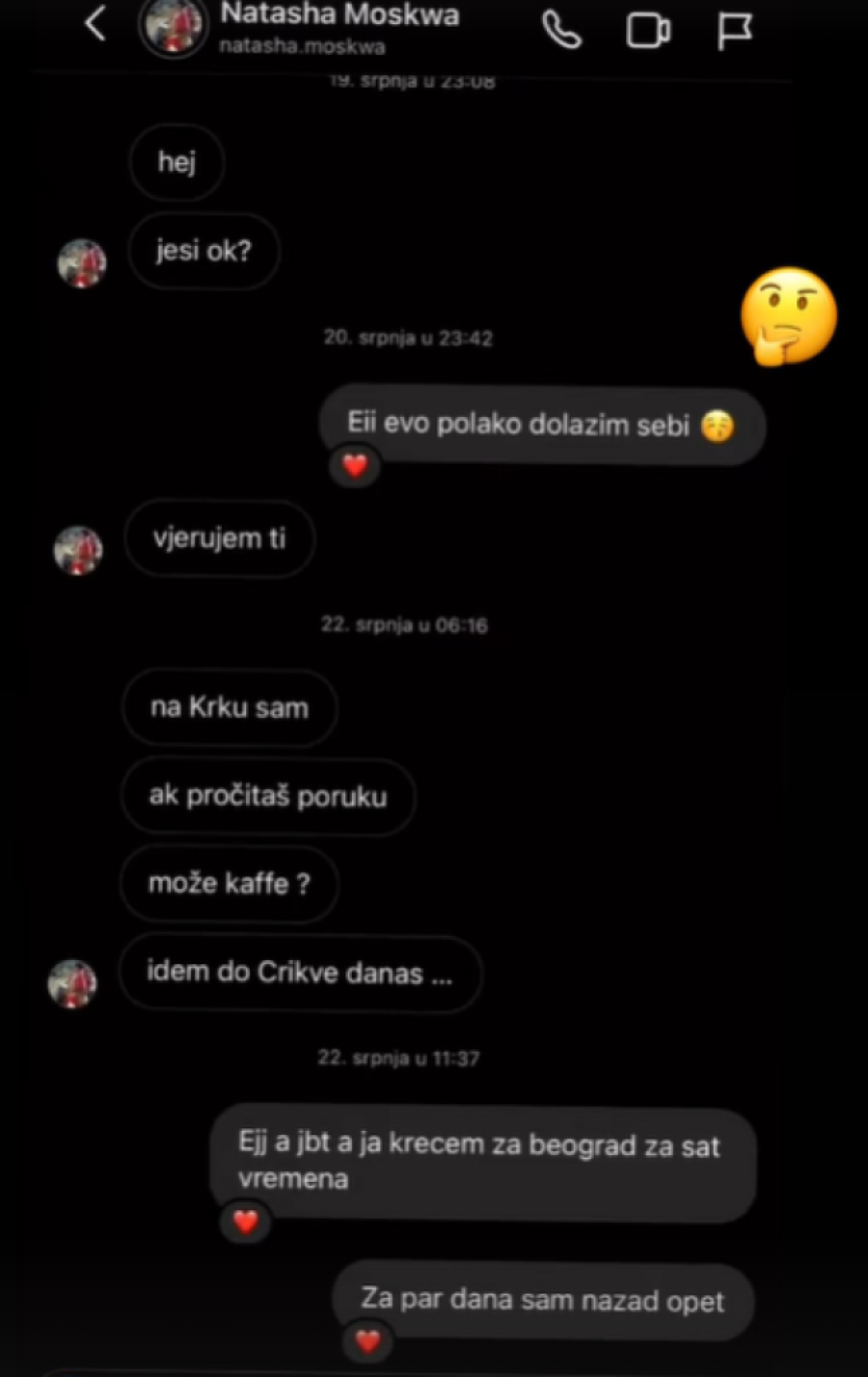 - Kako si mi? Moraš da se smiriš. Da ti ne zvučim kao neka tetka koja ti drži predavanje, ali osetim da si izmoren. To si mi rekao i zadnji put kad smo se čuli. Zovi ako bilo šta mogu, tu sam - stoji u jednoj poruka koju mu je poslala.