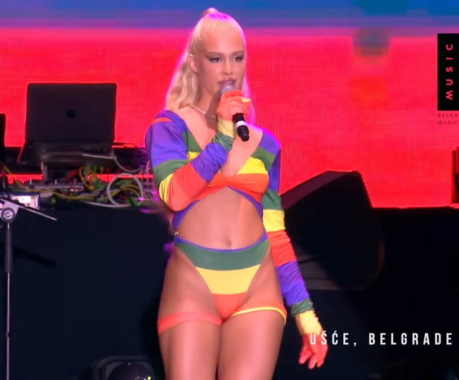 Na festivalu je krajem juna doživela stravične uvrede i sabotažu od strane publike tokom nastupa, a pravo negodovanje usledilo je kada se na bini pojavila u trikou duginih boja, dok se iza nje na gigantskom video-bimu viorila LGBT zastava.