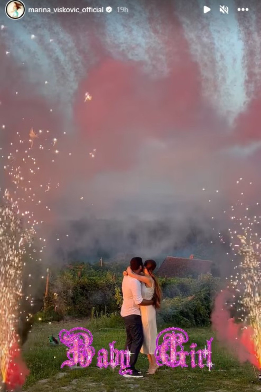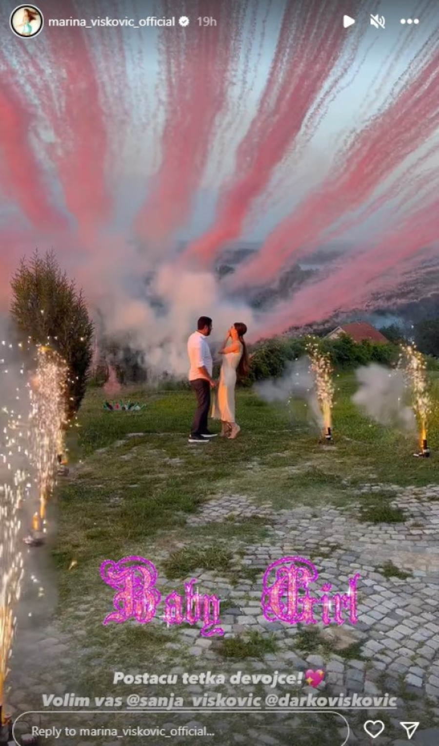 Avion je ispustio roze mlaz, što je bio znak da je njena snaja čeka žensko, a ispod video snimka gde je bio i vatromet, pevačica je napisala: