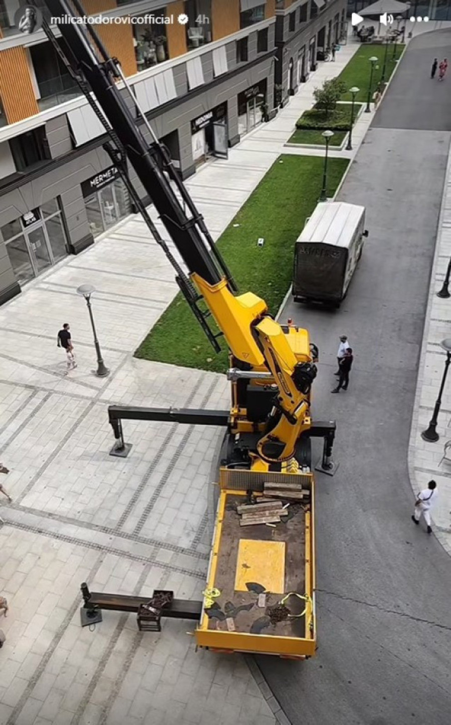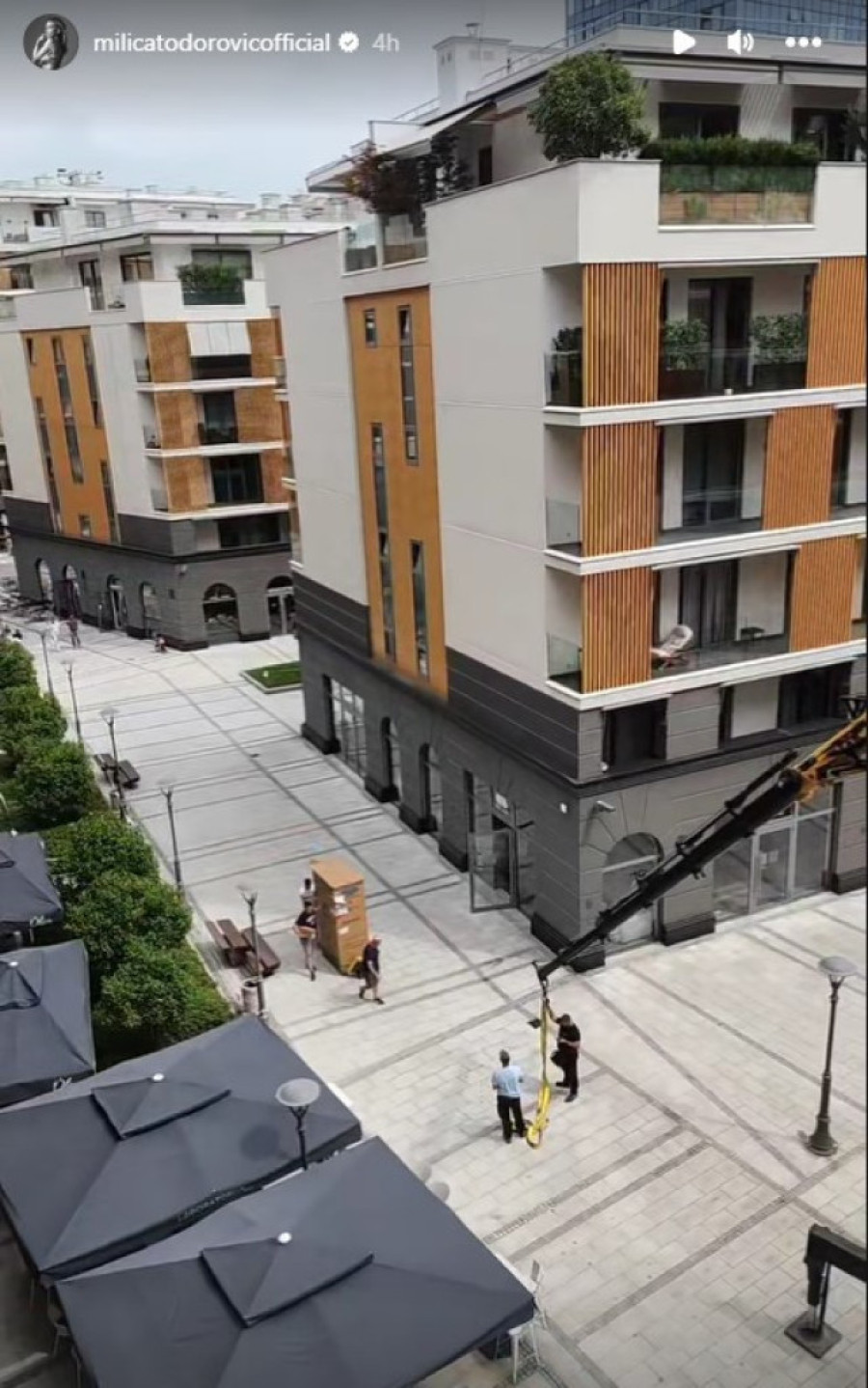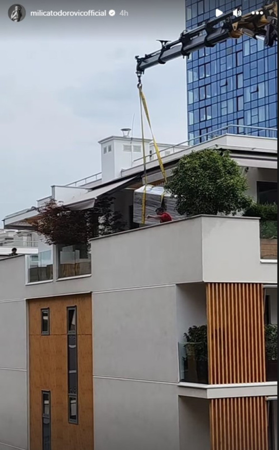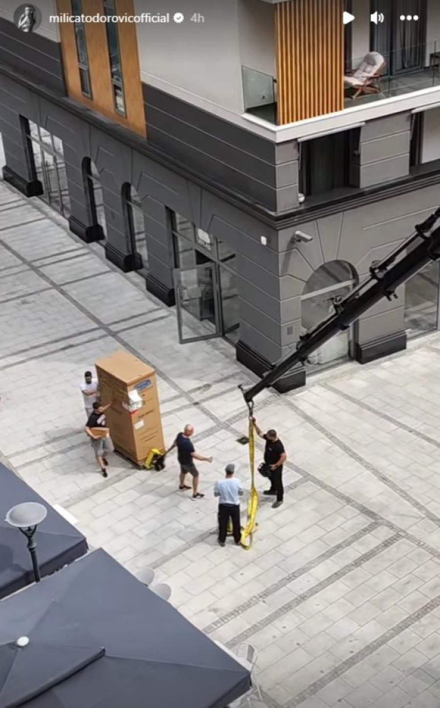 Pevačica je, naime, pokazala kako njene komšije dizalicom unose nameštaj u stan.