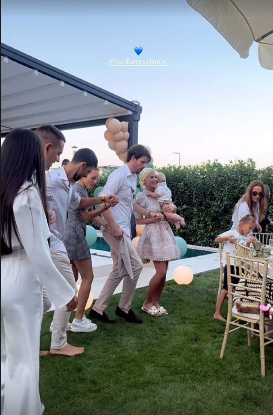 Nakon što je crkvena ceremnija obavljena u Crkvi Svetog Marka u Beogradu, porodica se sa rodbinom i prijateljima okupila u jednom beogradskom restoranu. Eomocije su ponele Noleta, koji je tog dana doleteo iz Amerike nakon trijumfa na US Openu, ali ga lepo raspoloženje i energija nisu napuštali. On je sa suprugom Jelenom zaigrao kolo, kome se pridružila i saška sa sinom u naručju, a teniser je bio toliko opušten, da se u jednom trenutku izuo i zaigrao bos.