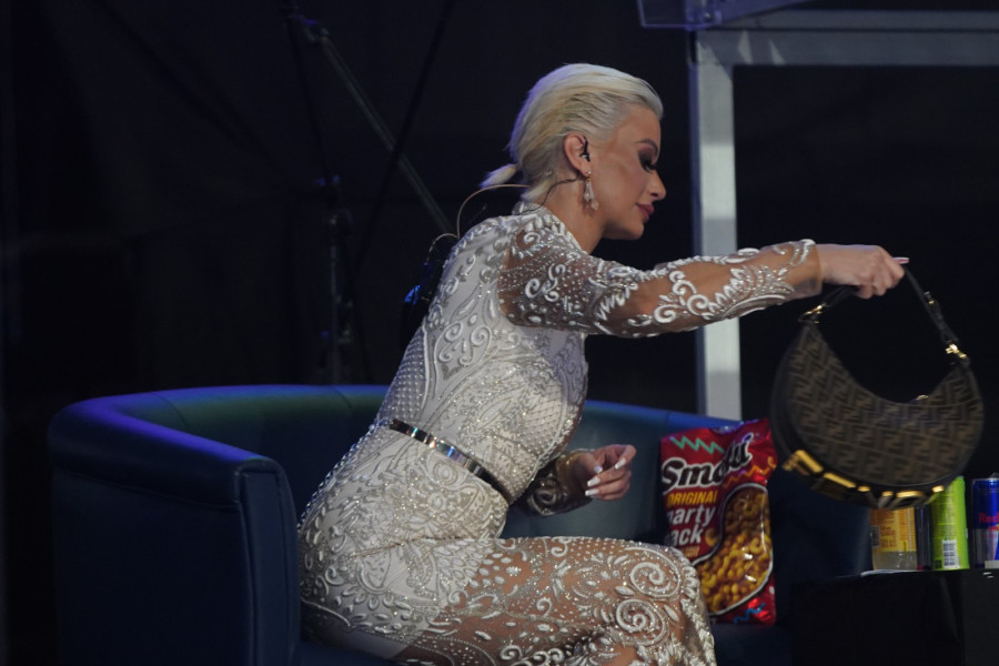 Dušica se, tako, opustila, pa smo je mogli videti kako stavlja lak na kosu, ali ujedno i igra jer ju je pogodila pesma. Iako vodi računa o liniji, na mestu gde je sedela dok su zadrugari nastupali, Dušica je imala brdo grickalica i pića, kako bi uspela da uspešno izgura veče.