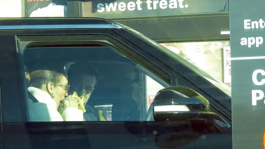 Dženifer je smazala svoj burger, a iako nije poznato šta je glumac poručio, na fotografijama se može videti da u ruci drži veliko piće.
