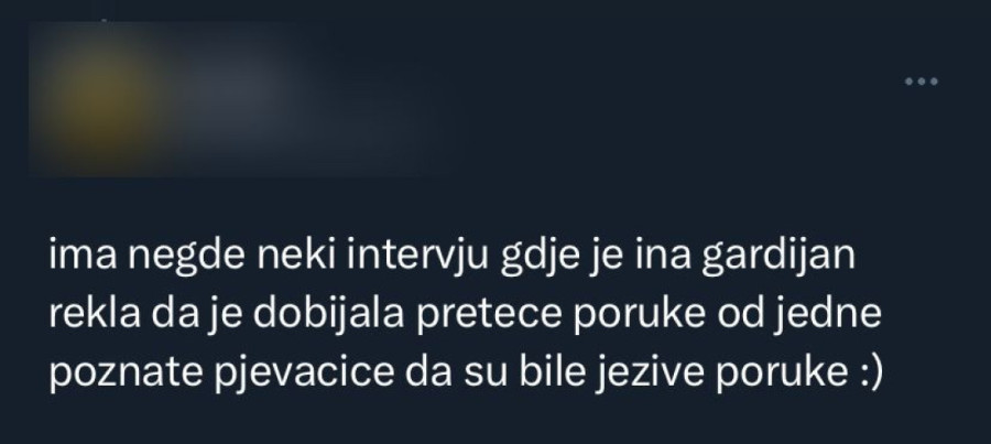 O ovome se već uveliko govori na društvenoj mreži "Iks" (nekadašnji Tviter). Korisnici ove društvene mreže: "Najsmešnije mi je što Ina Gardijan liči na kombinaciju Cece i Anastasije", "Ima negde intervju gde je Ina Gardijan rekla da je dobijala preteće poruke od jedne poznate pevačice"...