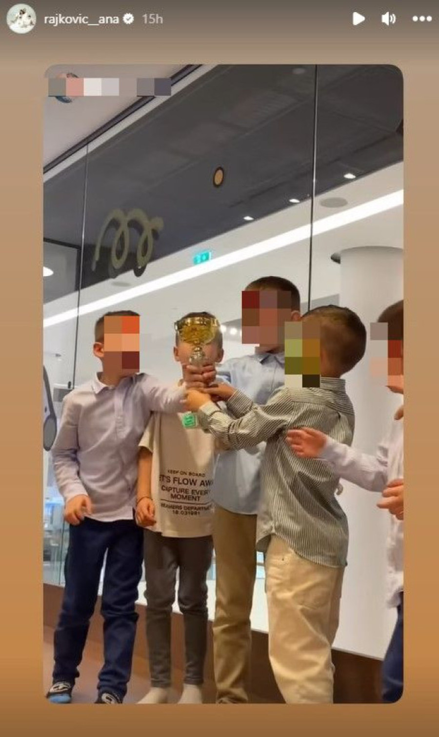 Mališan je s ekipom dobio priliku da u jednom trenutku podigne i mali pehar pred svima, čime je ponosna mama zasigurno pobrala brojne simaptije pratilaca s pomenute mreže.