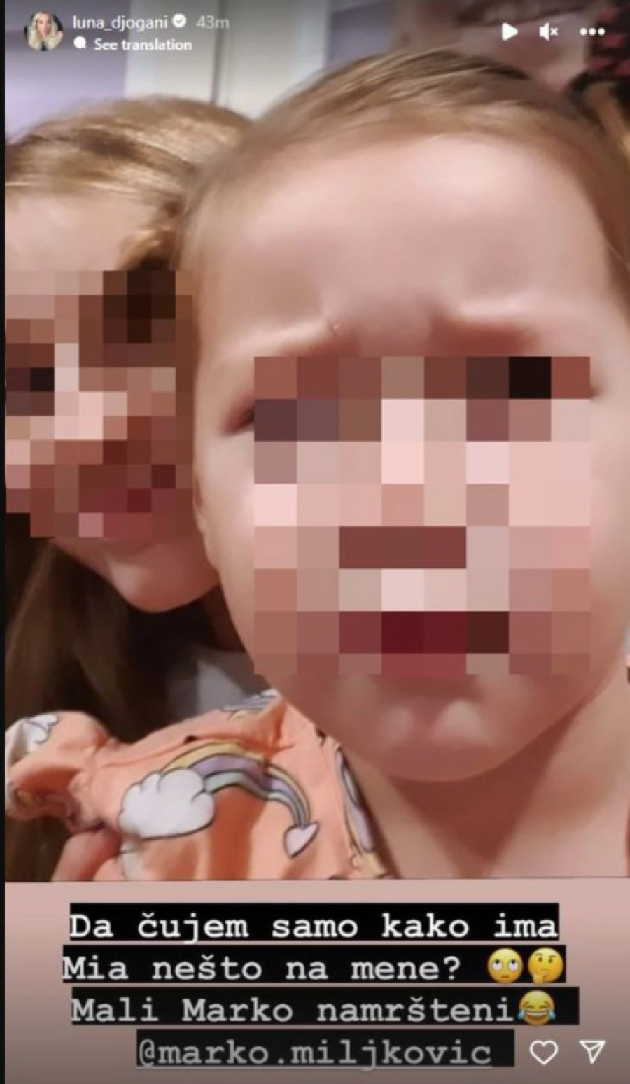 - Da čujem samo kako ima Mia nešto na mene? Mali Marko namršteni! - napisala je u opisu druge objave.