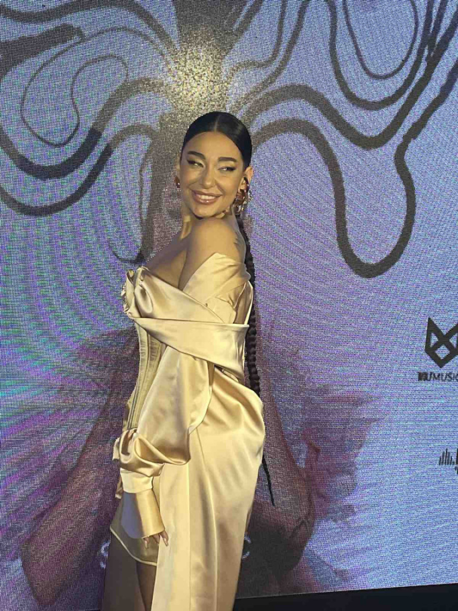 Pevačica je na promociju došla u prelepoj zlatnoj haljini. Gornj deo haljine urađen je u formi korseta, dok je donji deo haljine poput modela mini haljine, pa su mnogi gledali u njene tetovaže po nogama.