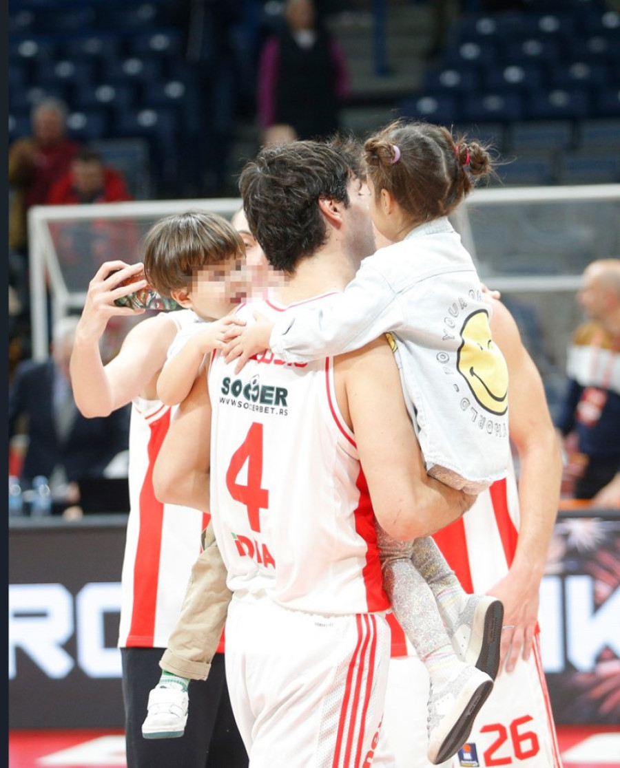 Jelisaveta Orašanin ispratila je sinoćni meč Crvena zvezda - Budućnost i to sa svojom decom, ćerkom Petrom (4) i sinom Bogdanom (2), koji su bili pod utiskom gledajući tatu čiji je tim i pobedio.