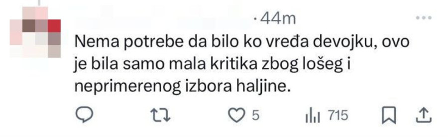 S druge strane, izvesni fanovi pokušavali su da je spasu prozivki, ali se takođe nisu slagali s izborom koji je napravila.