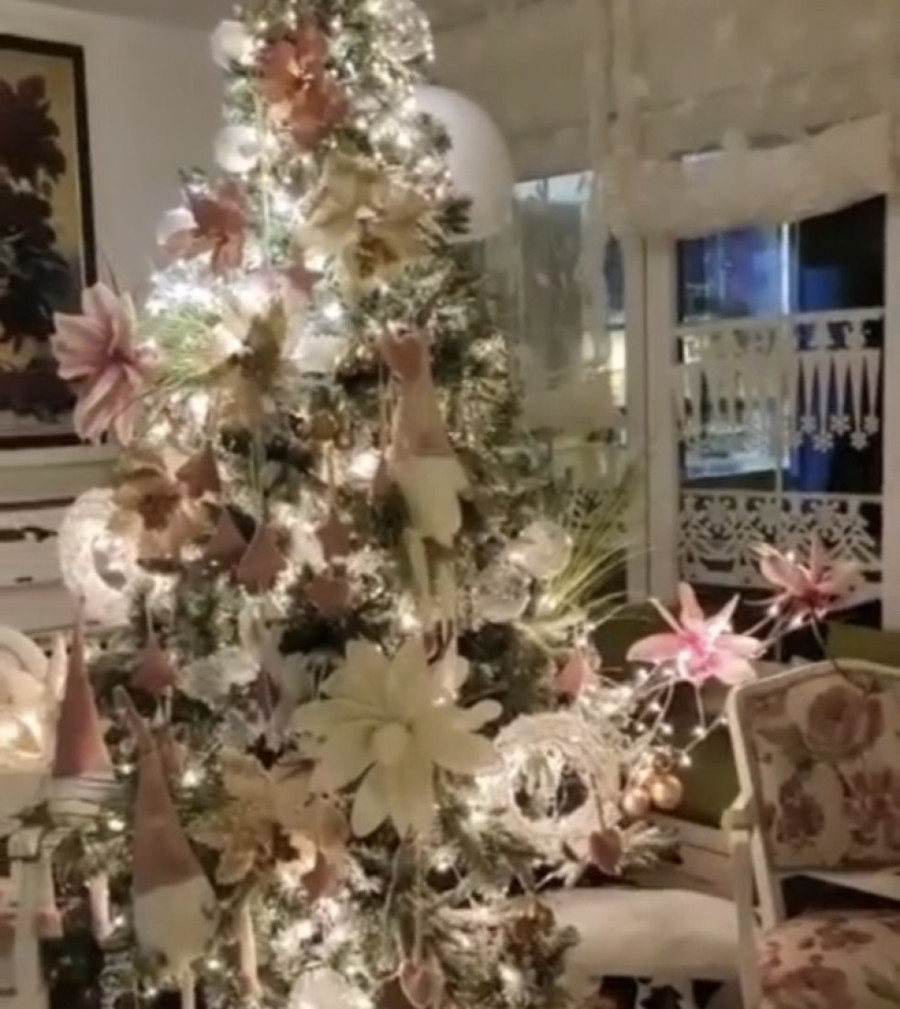 Glumica se posebno trudi da oko novogodišnjih praznika kuću dekoriše u tom stilu, pa je iscrtala prozore, a u dnevnoj sobi postavila veliku jelku koja se uklopila uz ostale dominantne nijanse. Ovo je samo upotpunilo dekoraciju koja već postoji u njenom dnevnom boravku, tačnije uz kamin, staklene stolove i klavir.