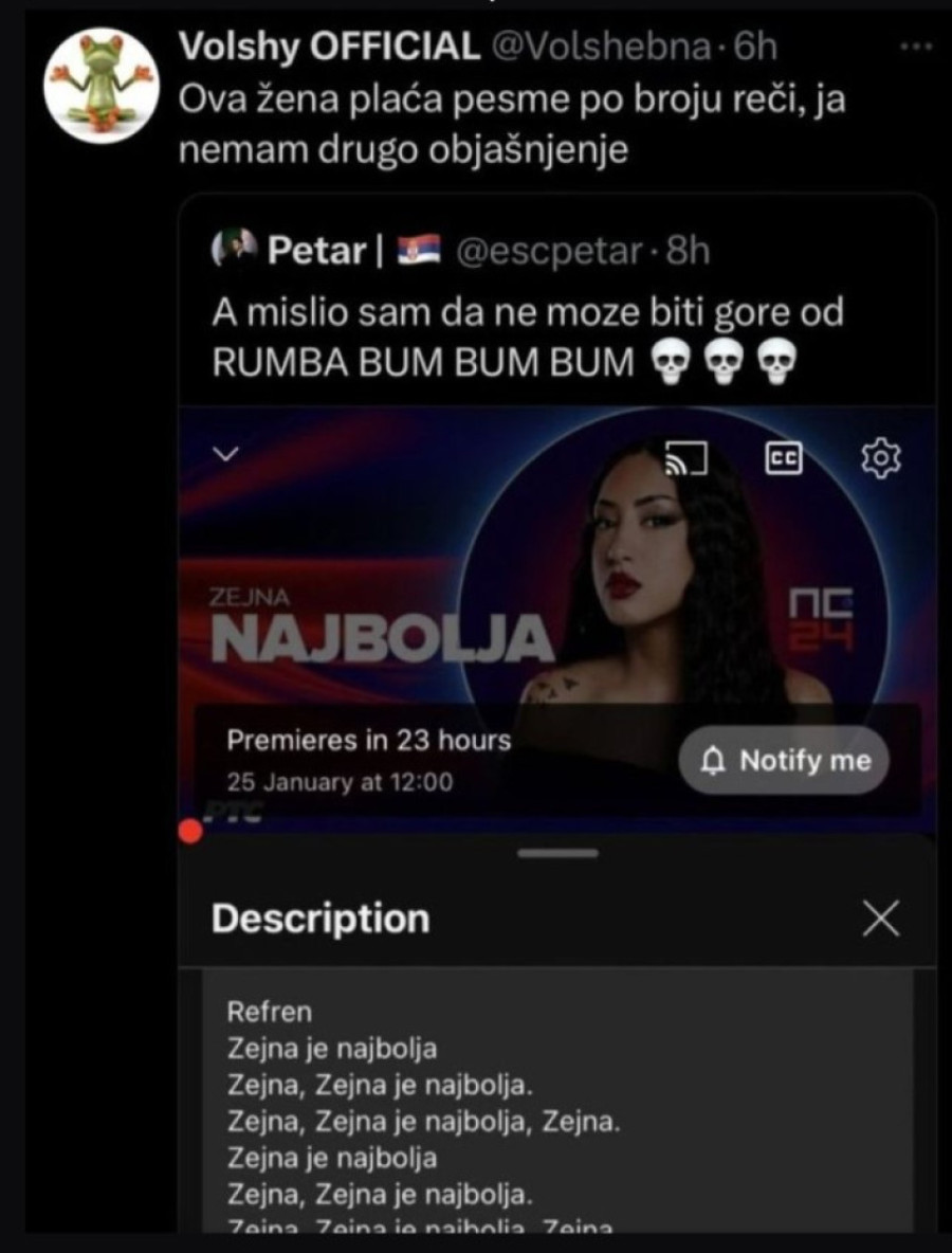 "Šta je sa njom i Lenom, pa guraju svoja imena u tekstove? Je l' kapira neko u čemu je fora?", "Ova žena plaća pesme po broju reči, ja nemam drugo objašnjenje", "Zejna, ostaješ kod kuće i ove godine" - bili su samo neki od komentara.