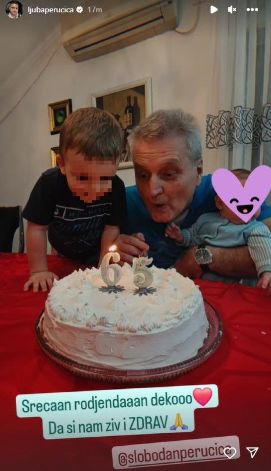 Kako se moglo videti u objavama kod Ljube i Katarine, pevačev otac danas proslavlja 65. rođendan i to u najlepšem društvu - sa svojim unucima.