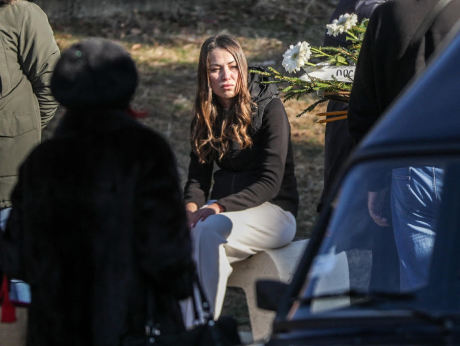 Ona je na groblje Lešće došla u crnini sa povređenom rukom koja joj je još u gipsu. Brojni prijatelji i rodbina pevačici izjavljuju saučešće, koja sa Bracom ima sina Iliju.