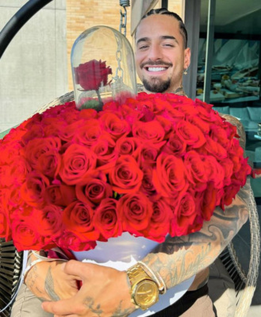 Tu je, očekivano, bio i veliki buket crvenih ruža, a ono što je još više privuklo pažnju jeste i to što je Maluma bio bez majice, sa njegovim specifičnim osmehom na licu.
