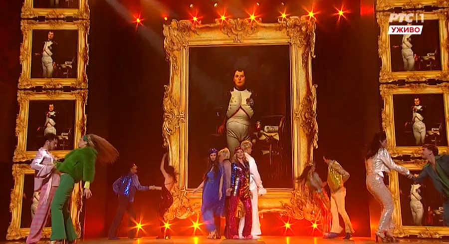 Dragana Kosjerina, Slaven Došlo, Kristina Radenković i Stefan Popović su u retro kostimima otpevali pesmu grupe ABBA "Waterloo", a pažnju su privukli i plesači kao i scenografija koji su učinili da sve izgleda kao da smo se vratili nekoliko decenija unazad.