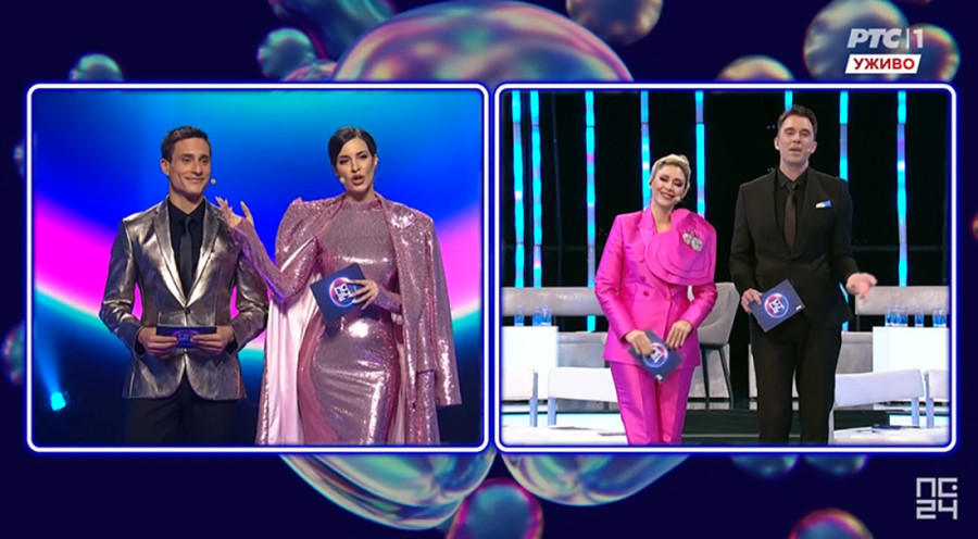 Voditelji i u finalu Pesme za Evroviziju su Dragana Kosjerina i Slaven Došlo, a nakon što su sa Kristinom Radenković i Stefanom Popovićem oduševili izvodeći pesmu gurpe ABBA, „Waterloo" u retro fazonu, preobukli su se ponovo.
