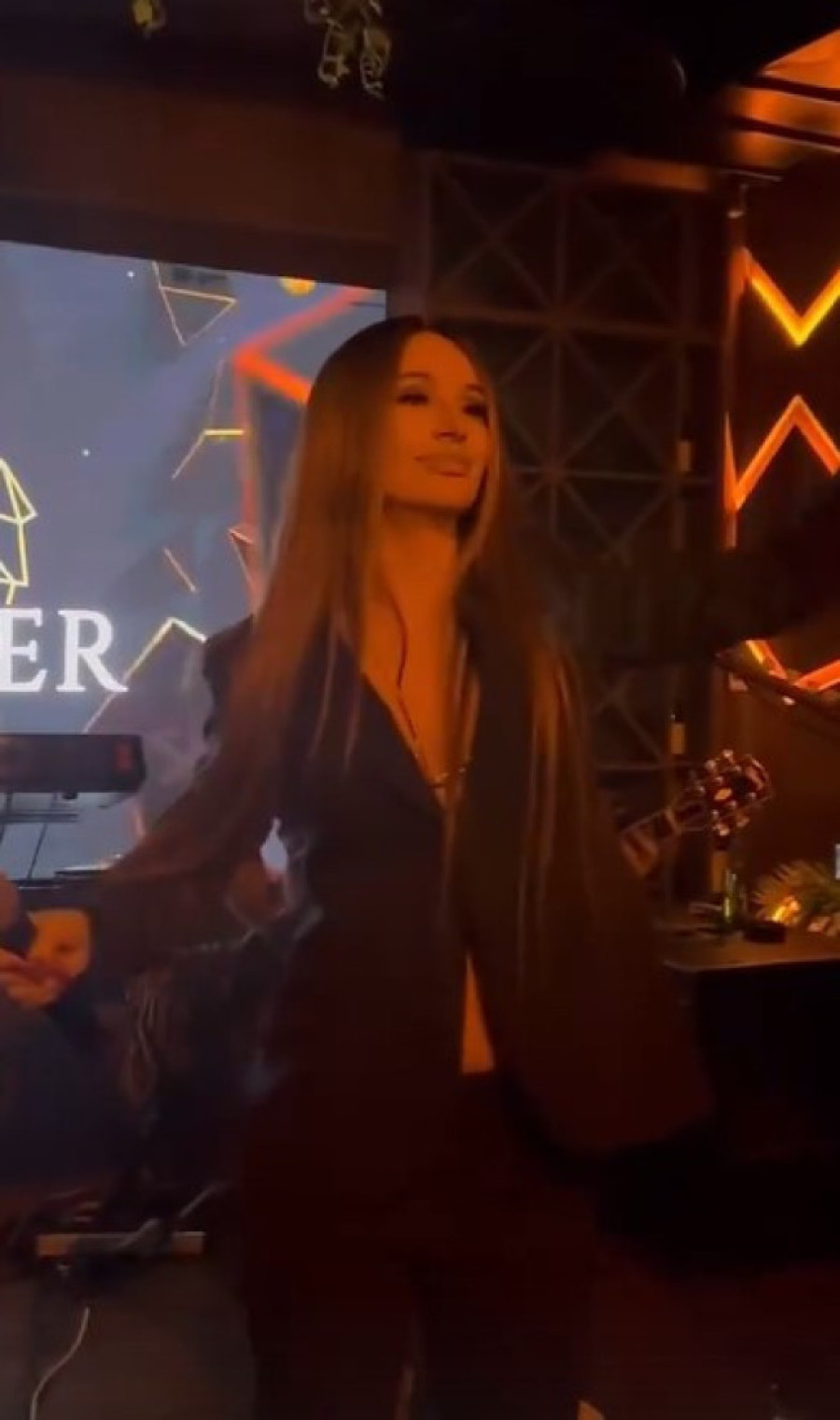 Ipak, pevačica više ne može da sakrije stomačić koji se nazire, a na sinoćnjem nastupu nosila je samo sako ispod koga nije bilo ništa. Kako ju je atmosfera ponela, Kaća je zaigrala, te su pristuni mogli da vide trudnički stomak.