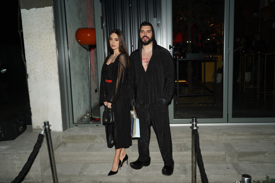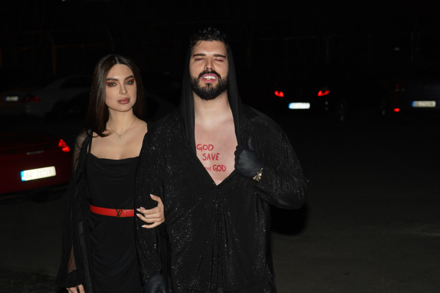 On se za ovu priliku čak i našminkao, te je oči uokvirio crvenom senkom, a Anđela je svoj stajling uklopila uz supruga, te je i ona bila u crno-crvenom.